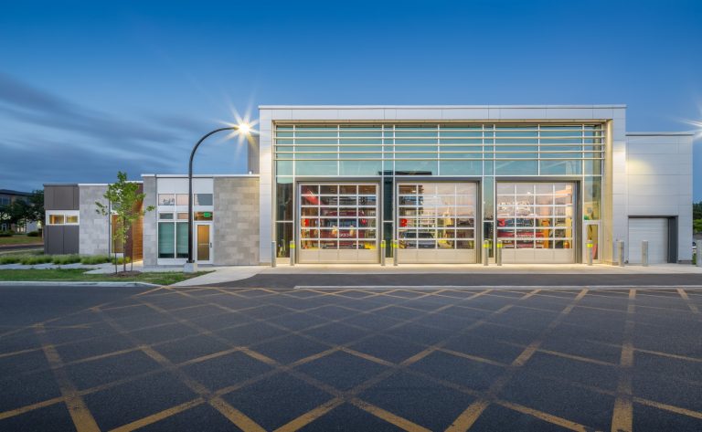 Cette deuxième caserne sur le territoire de la municipalité vient répondre aux normes du schéma de couverture de risques en incendie dont l’un des objectifs consiste à pouvoir déployer une dizaine de sapeurs en 10 minutes sur les feux de bâtiments. Sur le plan architectural, le nouvel immeuble a été conçu sur le modèle de la récente caserne installée dans l’arrondissement de Saint-Hubert, avec quelques petites variantes au niveau des aménagements. Il comporte notamment un plafond en bois, des planchers chauffants en béton, un système d’éclairage au DEL et des systèmes mécaniques de haute performance. Les portes du garage sont vitrées pleine hauteur, autant d’un côté comme de l’autre de cette section. Le bâtiment a des normes d’isolation élevées qui entraîneront des économies de frais de chauffage estimées entre 12 000 $ à 13 000 $ par an. Un système radiant installé au plafond permettra de déglacer les camions à incendie rapidement durant l’hiver.
